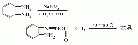 1.由鄰三胺與亞硝酸鈉反應(yīng)而得。將鄰二胺加入50℃水中溶解,再加入冰醋酸,降溫至5℃,加入亞硝酸鈉攪拌反應(yīng)。反應(yīng)物漸漸變成暗綠色,溫度升至70-80℃,溶液變?yōu)榻奂t色,于室溫放置2h,冷卻,濾出結(jié)晶,用冰水洗滌,干燥得粗品,將粗品減壓蒸餾,收集201-204℃(2.0kpa)的餾分,再用重結(jié)晶,可得熔點(diǎn)為96-97℃的產(chǎn)品,產(chǎn)率80%左右。曾有報(bào)道用亞硝酸鈉處理多菌靈的縮合廢水而得副產(chǎn)物并三氮唑。