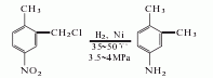 2、其制備方法是以對硝基為原料進行氯甲基化再加氫還原脫氯而制得。在反應釜內加入二氯甲醚、對硝基、氯磺酸,于15~20℃攪拌反應后,再經水解、過濾,濾餅洗滌得2-氯甲基-4-硝基,將2-氯甲基-4-硝基溶于中,加蘭尼鎳,先通氮氣取代反應器內的空氣,然后通氫氣,控制溫度35~50℃,壓力3.4~3.9 mpa,通氫氣完畢,蒸餾回收后,加氫氧化鈉堿化,再以水蒸氣蒸餾得成品。